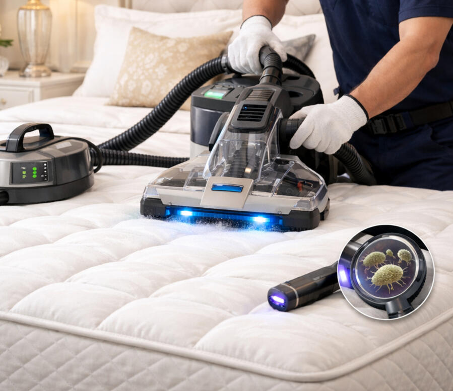 매트리스오염도측정 · 침대프레임클리닝 · 사이드엣지클리닝 · 매트리스클리닝 · UV살균